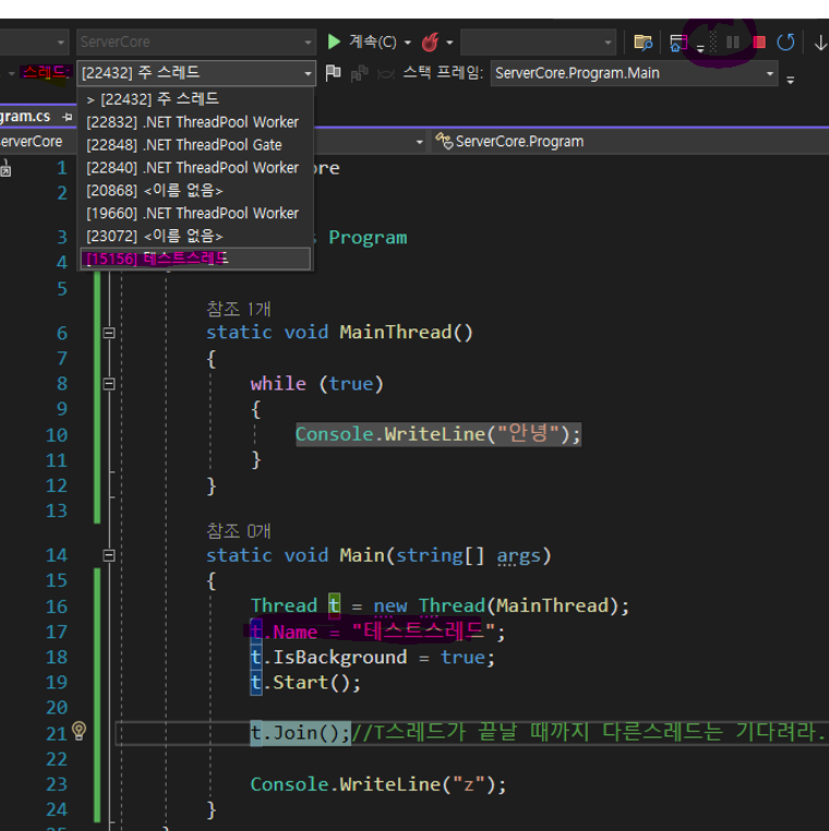 ThreadPool.SetMinThreads(1, 1); - 스레드풀 최소 값