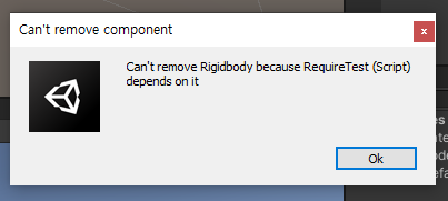 When you add a script which uses RequireComponent to a GameObject, the required component will automatically be added to the GameObject. This is useful to avoid setup errors. For example a script might require that a Rigidbody is always added to the same G