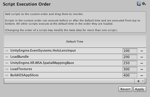 참고: 이 설정 창에서 지정된 실행 순서는 RuntimeInitializeOnLoadMethod 속성으로 표시된 함수 순서에 영향을 주지 않습니다(런타임 초기화 순서는 지정할 수 없음).