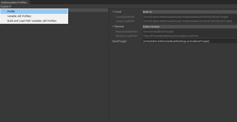 - Remote.BuildPath는 Addressable Asset System이 리소스를 빌드할 때 사용하는 경로입니다.