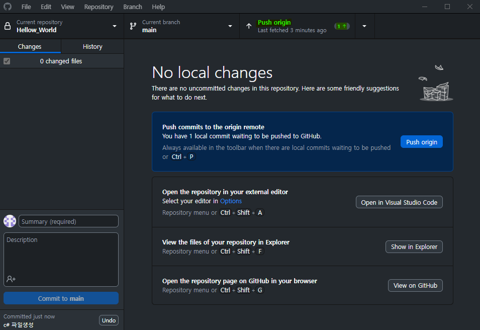 Changes - 저장소안에 변경 및 추가된파일 표시