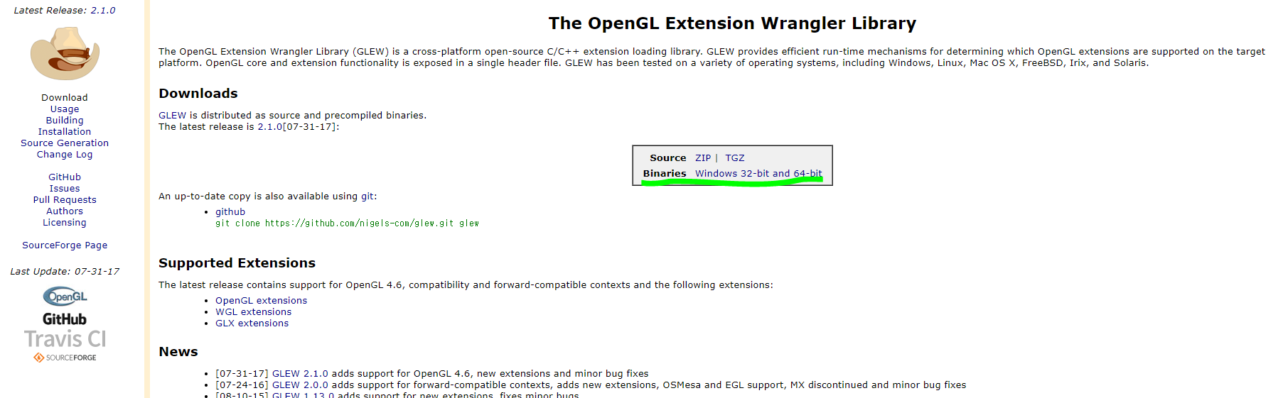 다운로드 URL : https://glew.sourceforge.net/