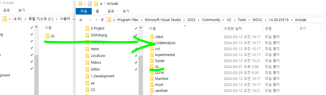 다운받은 glew폴더의 include폴더안 GL폴더를