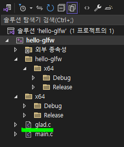 glad.c는 직접 소스코드에 포함시킨다.