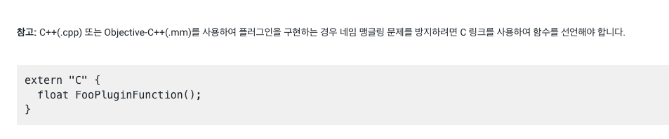 2. 네이티브 플러그인은 C 기반 언어 (C, C++, and Objective-C) 로 작성가능합니다.