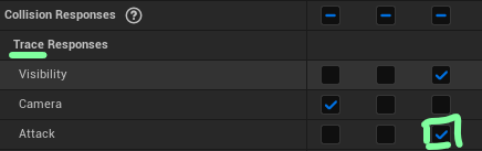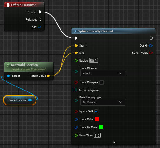 Sphere를 사용할 때 감지하고 싶은 객체의 Trace 채널 반드시 블록으로 설정되어있어야 한다.