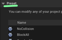 구 형태의 볼륨을 사용하여 특정 프로파일에 따라 충돌을 감지합니다. Preset(혹은 Profile)은 충돌 설정의 집합으로, 각 객체에 대해 어떤 방식으로 충돌을 감지할지 정의합니다.