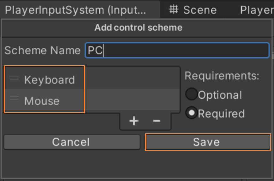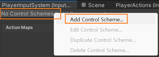 Control Schemes 클릭 -> Add Control Scheme 클릭