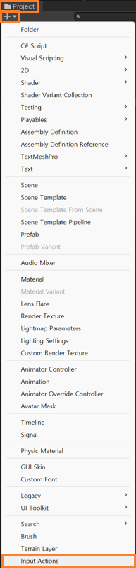 Project창 -> +버튼 or Create -> 하단 Input Actions 클릭
