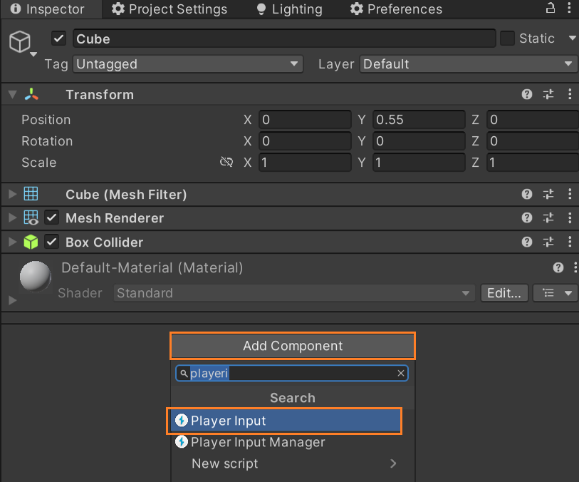 기존에 Cube에 넣었던 PlayerInput 컴포넌트를 삭제해 준다.