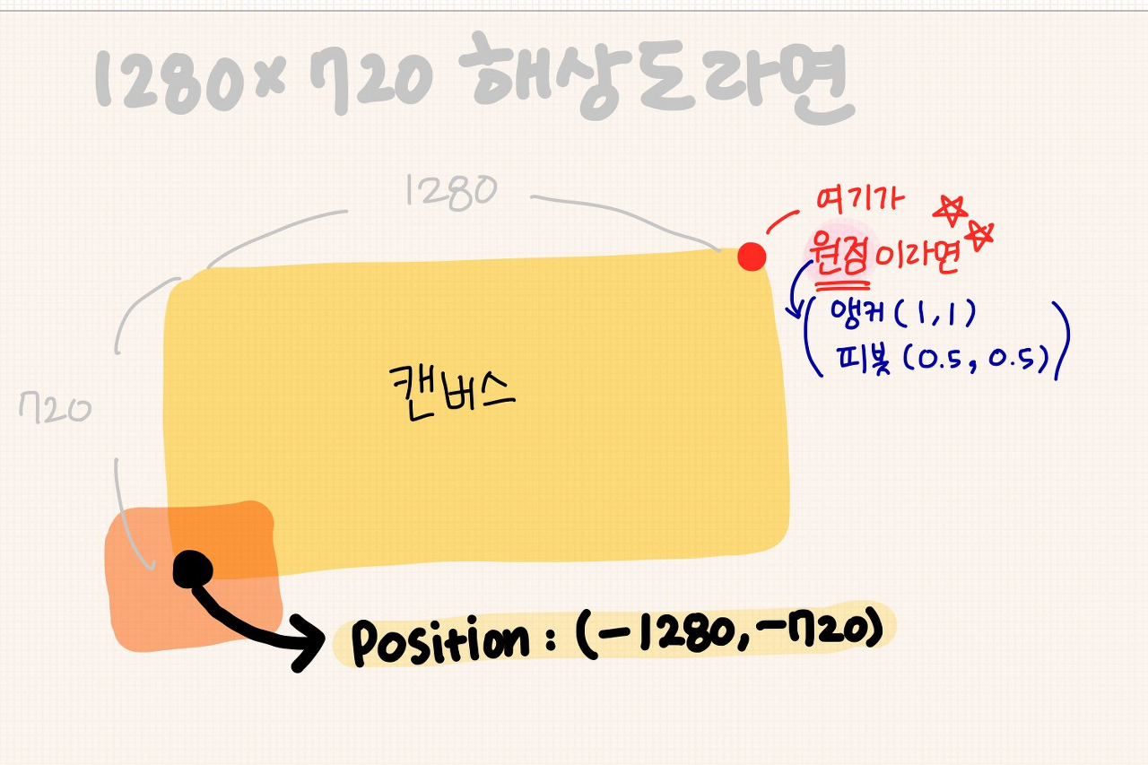- 이 앵커 좌표를 원점으로 하여 UI의 위치 Position 값이 결정된다.
