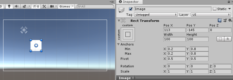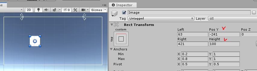 - 위치(Pos) : 앵커와 피벗을 기준으로 결정한 실제 좌표.