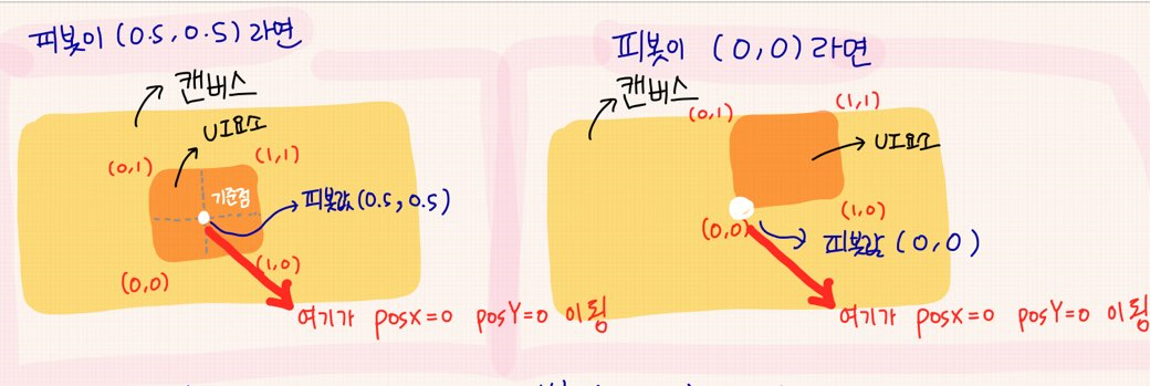 - 피벗(Pivot) : UI 요소 내부의 기준점을 정한다.