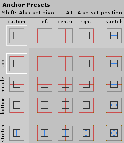 앵커 프리셋 : 유니티에서 제공하는 자주 사용되는 앵커-피봇 유형들.