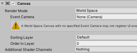 - 캔버스가 게임 월드 상에서 카메라 앞에 같이 위치하게 되므로 Terrain 같은 지형이나 다른 오브젝트에 캔버스가 파묻히게 되면 안보이므로 주의하자.