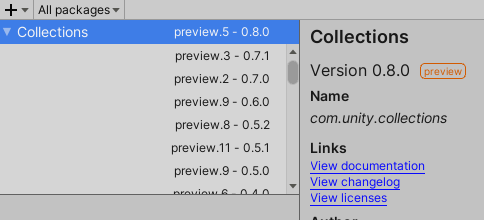 ※ 하단의 NativeContainer Type은 ECS에서 제공하는 NativeContainer Type으로 Package Manager를 통해 Collections을 Import해야지만 사용이 가능하다.