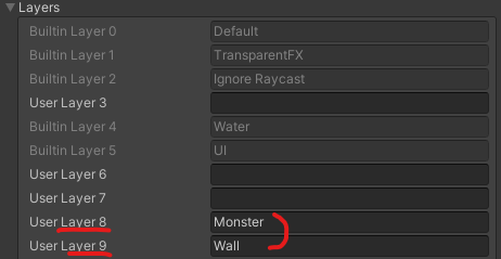 RayerMask는 비트플레그(Int32)를 사용한다.