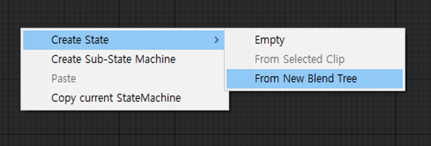 [Unity][방법] 에니매이션 합성하여 호출하는 방법 1. Animator 창에서 우클릭 2. motion 추가 3. 2개의 합성된 애니메이션 사용시 조절 파라미터 생성 4. 합성 애니메이션 소스에서 호출 (Mathf.Lerp는 부드러운 움직임을 위해) if (_moveToDest) { wait_run_ratio = Mathf.Lerp(wait_run_ratio, 1, 10.0f * Time.deltaTime); Animator anim = GetComponent(); anim.SetFloat("wait_run_ratio", wait_run_ratio); anim.Play("WAIT_RUN"); } else { wait_run_ratio = Mathf.Lerp(wait_run_ratio, 0, 10.0f * Time.deltaTime); Animator a.. Unity 2022.10.06